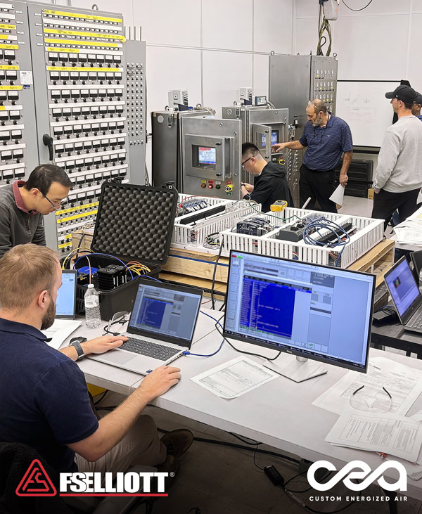 After the panel was built, the CEA team traveled to FS-Elliott’s factory in Pittsburgh to support a full week of Factory Acceptance Testing. With FAT complete, it is now en route to Fort Saskatchewan, where it will be installed on an FS-Elliott PAP Plus compressor.